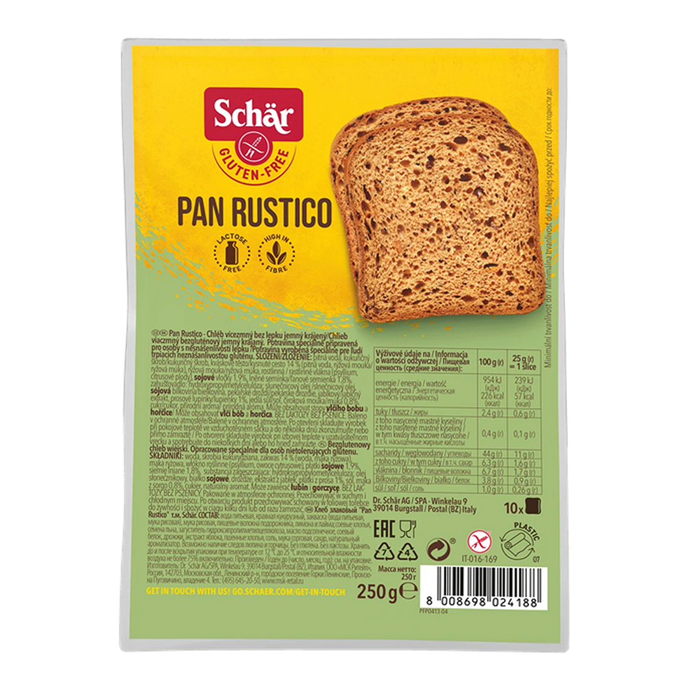 SCHÄR - chléb Pan Rustico - vícezrnný, bez lepku, 250g
