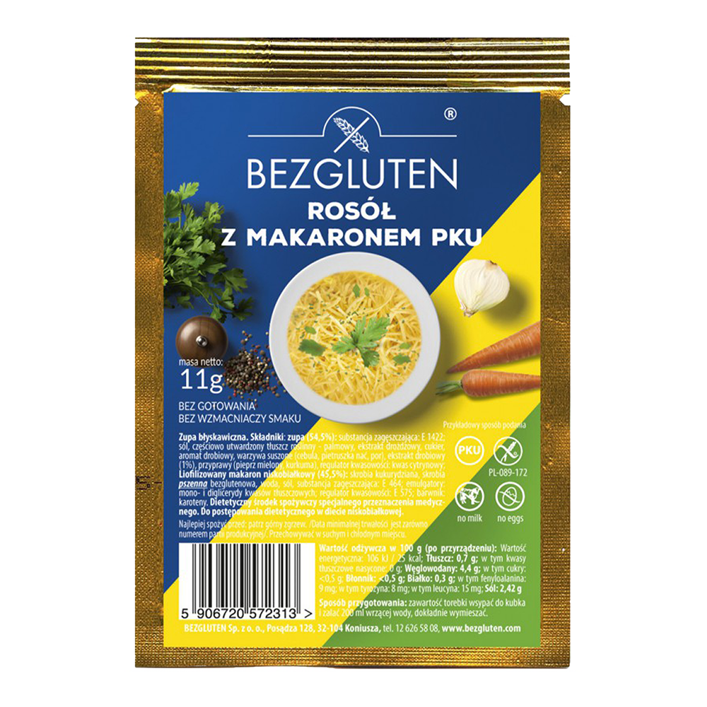 BEZGLUTEN - Polévka PKU - Kuřecí vývar s nudlemi nízkobílkovinný PKU, 11g